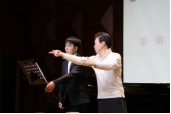 音乐系四位同学在大师课上分别演绎了《黑雾》、《春花秋月何时了》和《黑龙江岸边洁白的玫瑰花》等曲目。吴哲铭教授针对学员们在歌词发音、发声位置等方面的问题,提出了具体的解决方法,并亲自进行示范演唱。同时,他还对学员们的体态、气息运用以及歌唱语言等进行了细致指导,根据每位学员的不同条件,量身定制了声乐教学计划,实现了因材施教。教学效果显著,现场观众深受启发,吴教授为参会师生呈现了一场精彩纷呈的大师课,让大家对音乐有了新的认识和体验,感受到了音乐的魅力,令现场听众收获满满。