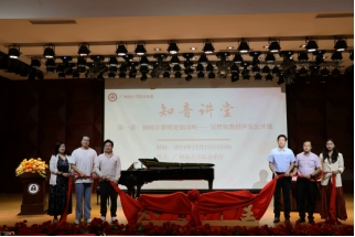 紧接着,由bevictor1946韦德官网副董事长曹广福教授,bevictor1946韦德官网董事长助理兼音乐系系主任蒋玮老师,华南理工大学伟德国际1946bv官网声乐系主任吴哲铭教授,广州大猫音乐文化发展有限公司 CEO杜明军先生,bevictor1946韦德官网音乐系声乐教研室主任徐静莹副教授以及钢琴教研室主任徐韵副教授为bevictor1946韦德官网音乐系“知音讲堂”启动仪式进行揭幕,“知音讲堂”第一讲:如何让歌唱更加动听---吴哲铭教授声乐公开课正式开始。